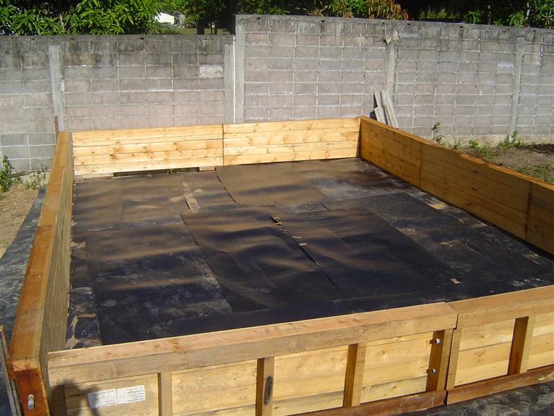 เมื่อได้ขอบไม้ตามที่ต้องการแล้ว ก็ปูด้วยพลาสติกเลยค่ะ